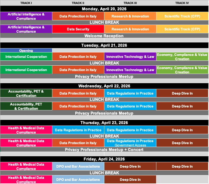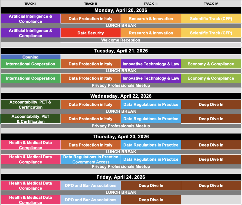 This track will take place in Italian. The Italian programme is coordinated by the The Italian Institute for Privacy and Data Valorisation (IIP) in cooperation with several Italian privacy and data protection organisations.